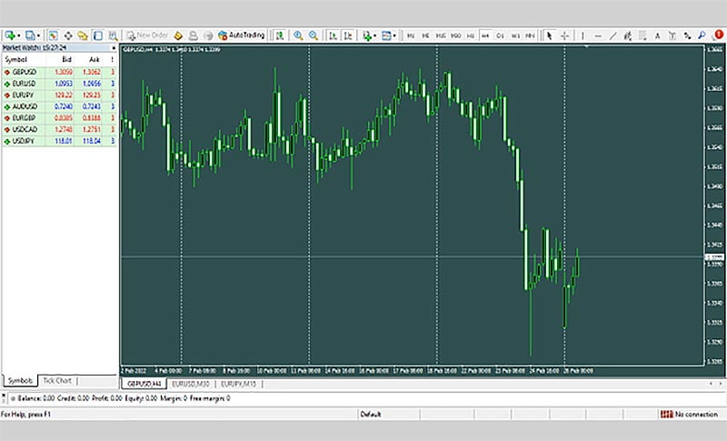 Once the trading platform is connected to the internet, the price feeds are updated in real time so we have access to the current quotes for different currencies, commodities and crypto assets.