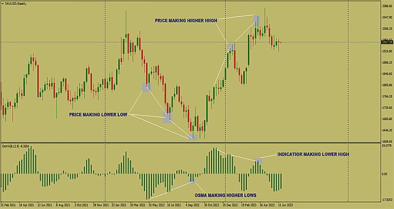 It’s a leading indication that price is about to change direction and reverse a trend to a new direction or continue in the original trend. Some indicators used to identify divergence are the MACD, OSMA, RSI, CCI, STOCHASTIC.