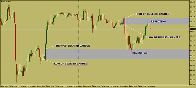 Identifying and trading the Demand and supply zone is more complex, but the simplest way is to identify a bullish or bearish candlestick pattern and mark out the high and low of the smaller candle. This idea behind the demand and supply zones is that the big money traders often use these zones as a primary reentry level because this is where the smart money have entered their trades initially.