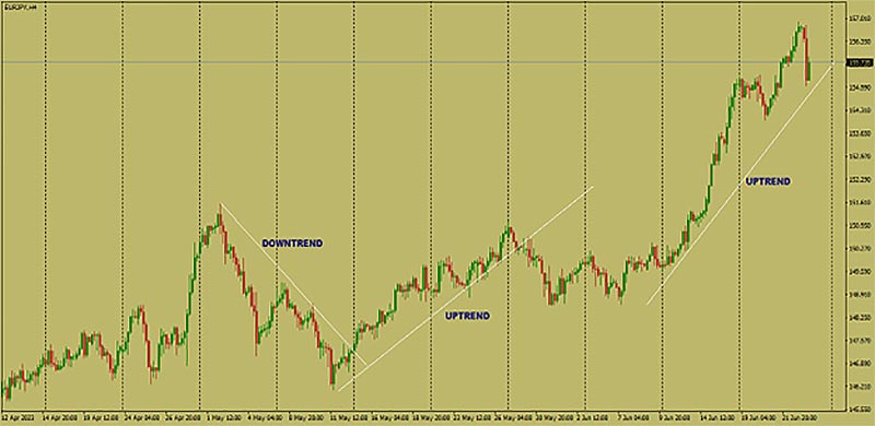 When we look at the charts, it’s easy to tell when price is on an uptrend or downtrend. When we zoom out alternatively we see that the price is ranging or consolidating as it moves widen in two parallel lines.