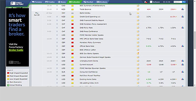 So for instance the war between Russia and Ukraine has affected the value of the Russian ruble because of the multitude of sanctions leveled against the country and indirectly affected economies that depend on either Ukraine or Russian for different commodities like wheat for bread, oil and gas for running factories. There are forex calendar that track most of the news events in the forex industry and we can access these news from websites like forexfactory.com which is the most common sites to get news, so many others are available from fxbook.com, mql5.com etc Below is the snap shots of the forex factory calendar. It shows the days, time and currency with the news for the day, with the previous, forecast and actual figures.